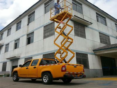車載式液壓升降臺是由升降臺和汽車配套改裝而成的,接取汽車引擎動力,實現升降臺的升降功能,適用于大流動量和移動性頻繁且使用地較遠場合的高空作業。